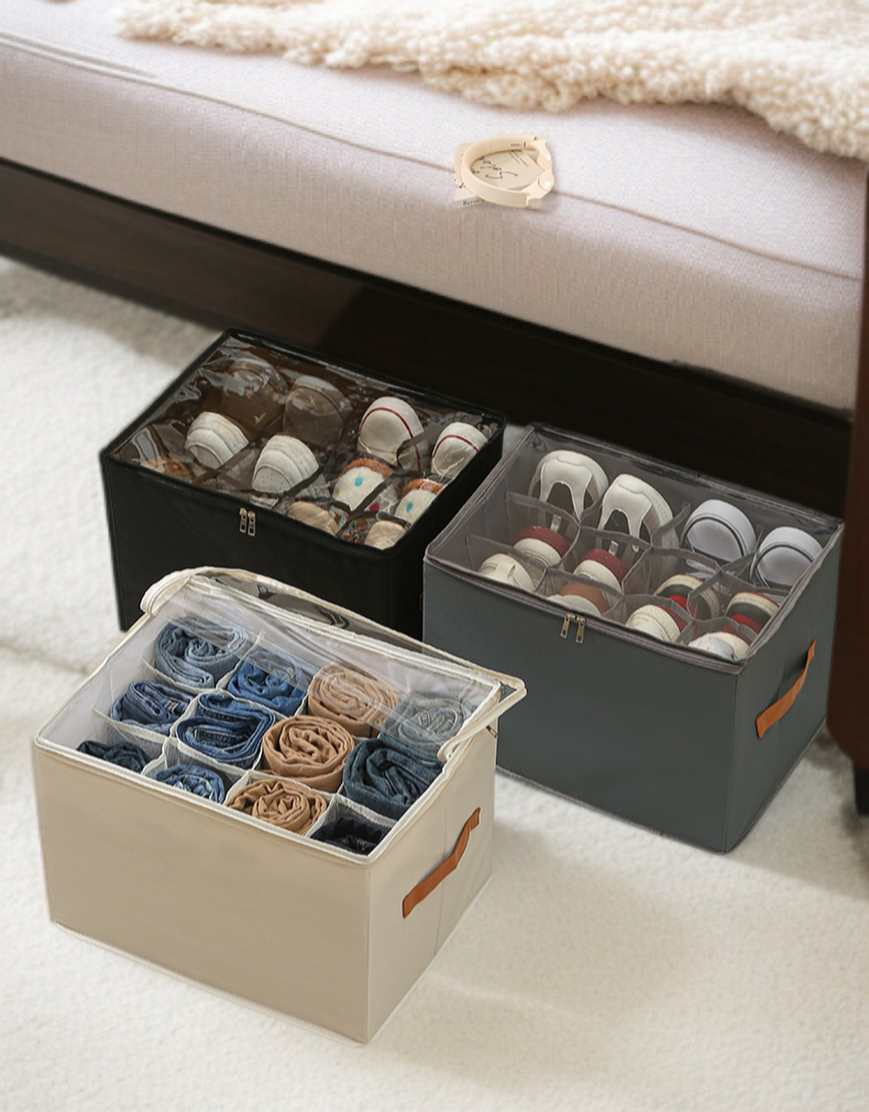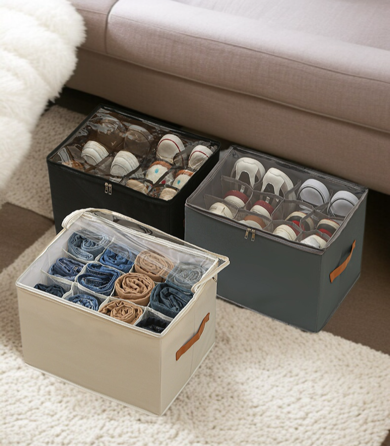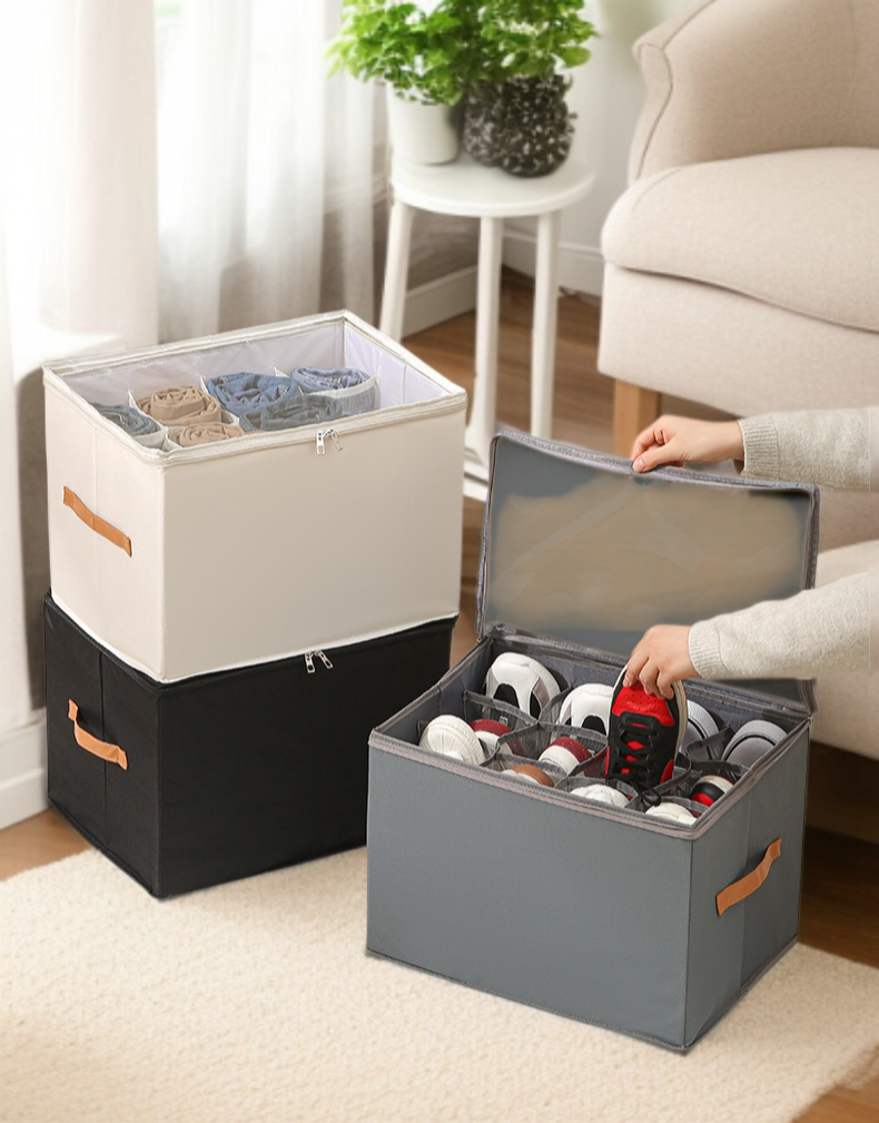 ● 튼튼한 소재와 견고한 뚜껑이 먼지와 오염으로부터 신발과 의류를 안전하게 보호합니다.